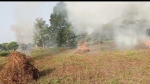 दुखी किसान ने कटी सोयाबीन की फसल में लगाई आग,
