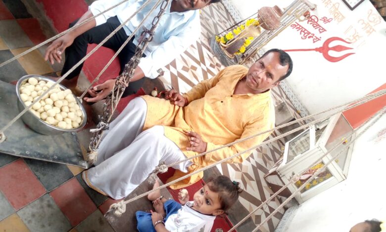 खाटू श्याम मंदिर पर मन्नत पूरी होने पर किया गया लड्डू से तुलादान।