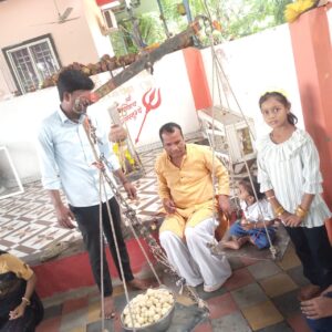 खाटू श्याम मंदिर पर मन्नत पूरी होने पर किया गया लड्डू से तुलादान।