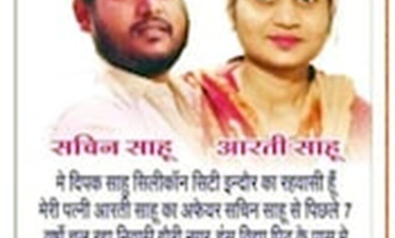 राजा रघुवंशी हत्याकांड के बाद अब लोग जहां शादी से पूर्व जाहिर सूचना जारी कर पूछ रहे हैं कि ”मैं फलां युवती से शादी कर रहा हूं, अगर किसी को कोई आपत्ती हो तो सम्पर्क करें…” वहीं अब इंदौर से अजब-गजब मामला सामने आया है… शहर के सिलीकॉन सिटी निवासी दीपक साहू को जब पता चला कि उसकी पत्नी का अफेयर गौरी नगर निवासी किसी सचिन साहू से चल रहा है तो उसने ”जाहिर सूचना” छपवा दी, जो अब सोशल मीडिया पर भी वायरल भी हो रही है… दीपक ने जो जाहिर सूचना छपवाई उसमें लिखा है – ”मैं दीपक साहू, निवासी सिलीकॉन सिटी, इंदौर, यह स्पष्ट करना चाहता हूं कि मेरी पत्नी आरती साहू का अफेयर पिछले 7 वर्षों से सचिन साहू नामक व्यक्ति से चल रहा है, जो इंदौर के गौरी नगर हंस विद्यापीठ के पास रहता है… जब मैंने इसका विरोध किया तो मुझे जान से मारने की धमकियां दी जाने लगीं…” इस तरह की खबरें सामने आने के बाद विशेषज्ञ भी अपने बयान जारी करते हुए कह रहे हैं कि ”राजा रघुवंशी हत्याकांड से शुरू हुआ यह ट्रेंड समाज में संवाद की कमी, रिश्तों में पारदर्शिता की कमी और बढ़ते अविश्वास का संकेत है… लोग अब रिश्तों में सिर्फ भावनाओं पर नहीं, सबूत और सच्चाई पर भरोसा करना चाहते हैं…”