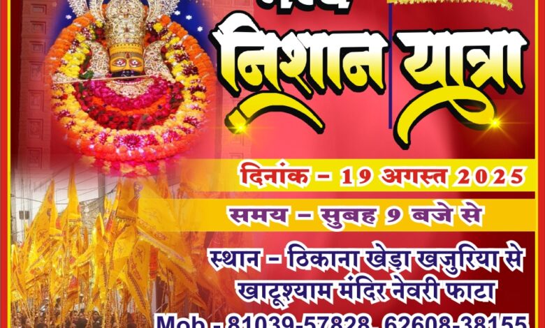 नेवरी फाटा क्षेत्र में स्थित श्री खाटू श्याम मंदिर पर प्रत्येक एकादशी पर सैकड़ो की संख्या में लोग निशान लेकर आते हैं। ठीक इसी प्रकार इस एकादशी पर भी भव्य निशान यात्रा अलग-अलग दो जगह से आएगी।