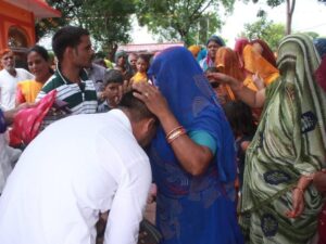– सरपंच ने गुलाब के पुष्पों से पुष्प वर्षा कर माताओं और बहनों का सम्मान किया।