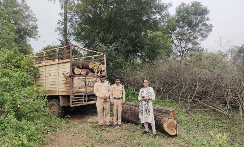 तहसीलदार ज्योति जाटव ने हरे भरे वृक्षों की कटाई रुकवाकर वाहन जब्त किया।