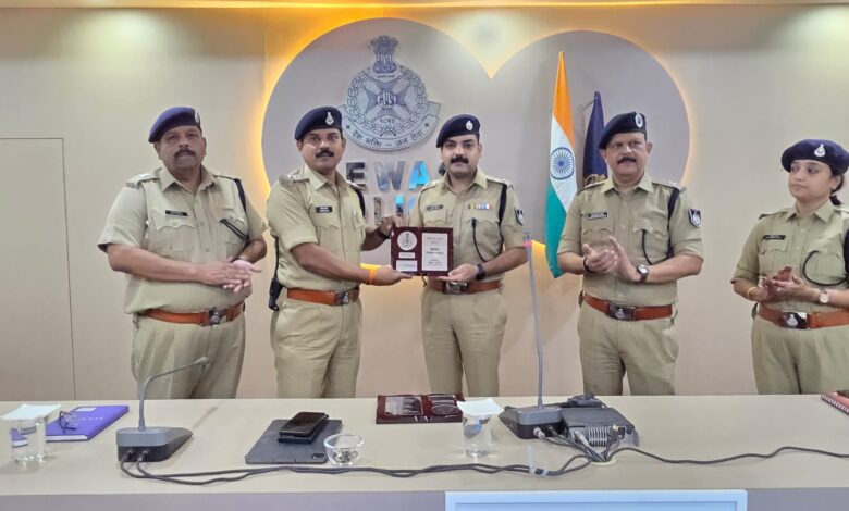 थाना प्रभारी निरीक्षक हितेश पाटिल को उत्कृष्ट कार्य हेतु पुरस्कृत किया गया।